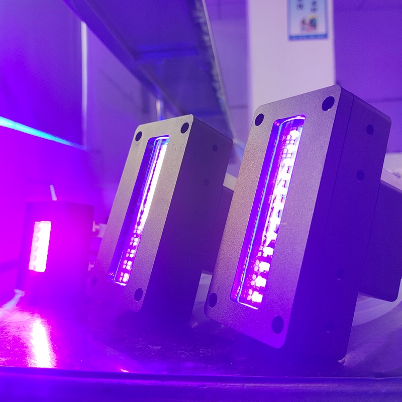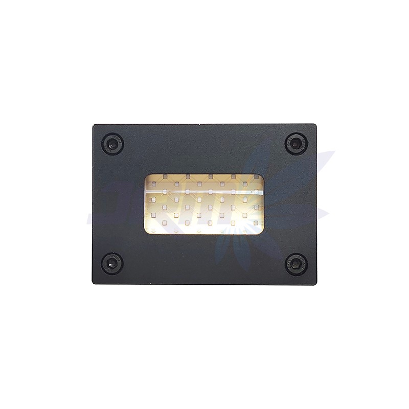 UVLED固化原理是指,在紫外光的照射下光引發(fā)劑吸收特定的波長光子,達到激發(fā)狀態(tài)形成自由基或陽離子,然后通過分子間能量的傳遞,使聚合性預聚物和感光性單體變成激發(fā)態(tài),產(chǎn)生電荷轉移絡合體,這些絡合體不斷交聯(lián)聚合,在極短的時間里產(chǎn)生固化,形成三維網(wǎng)狀結構的高分子聚合物。