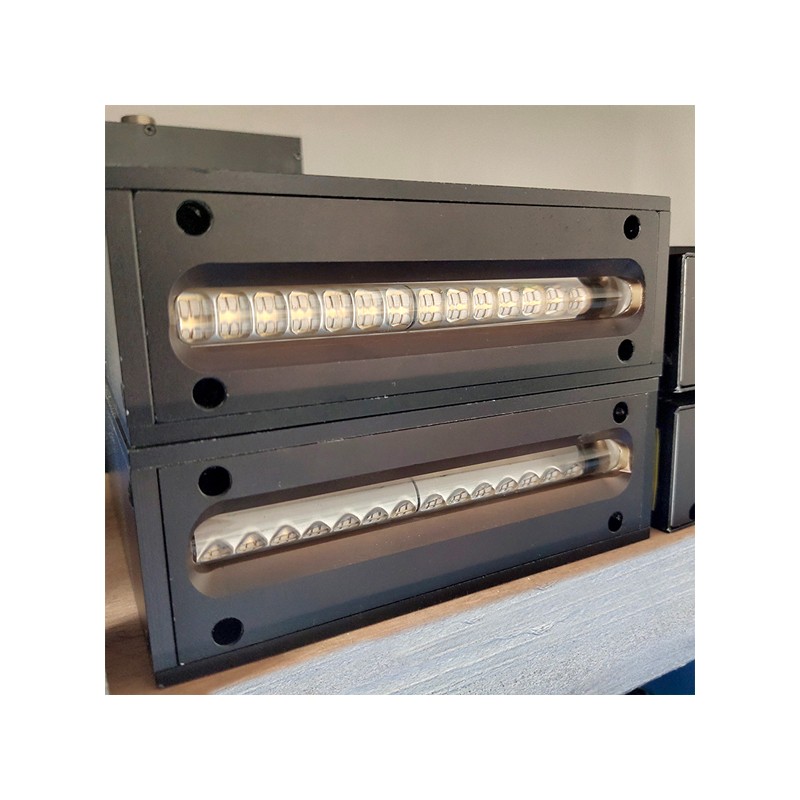 UVLED固化系統(tǒng)的照射頭均采用進口高強芯片,UV光譜波長可根據實際需求定制365-395-415nm,冷卻方式采用晶銳銘主自研發(fā)的強制冷水散熱系統(tǒng),具備實時工況檢測、智能監(jiān)控、多重保護等功能,實現高效、節(jié)能、環(huán)保、便捷且故障率低的固化應用方案。